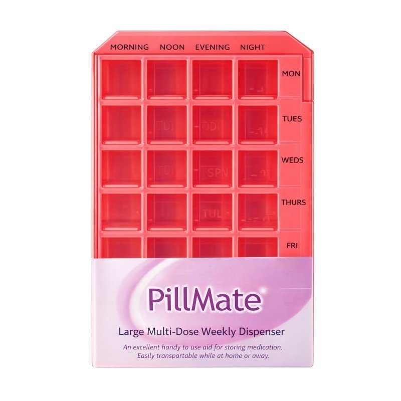 A 7 day weekly pill organiser with four compartments per day, designed for easy medication management. This large tablet box helps organise morning, noon, evening and night doses, making it ideal for daily routines and for those using a large capacity pill organiser.