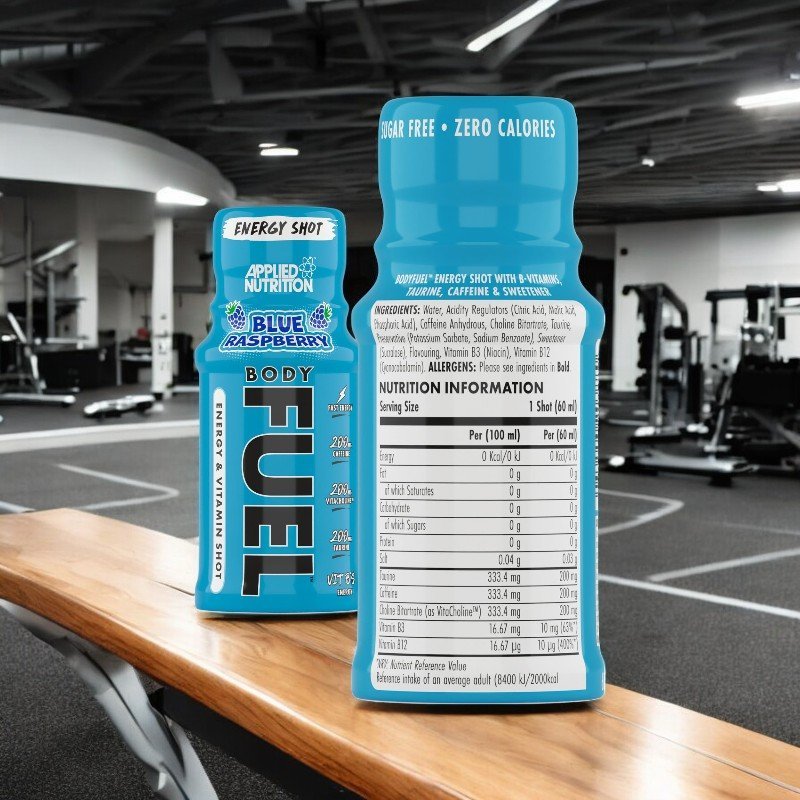 Applied Nutrition BodyFuel™ energy shot provides a quick, convenient, and tasty pick-me-up. Each 60ml shot offers 200mg of Taurine, 200mg of Caffeine, VitaCholine™ (as Choline-L-Bitartrate) for its nootropic effects, and essential B-vitamins to support energy levels and metabolic functioning.