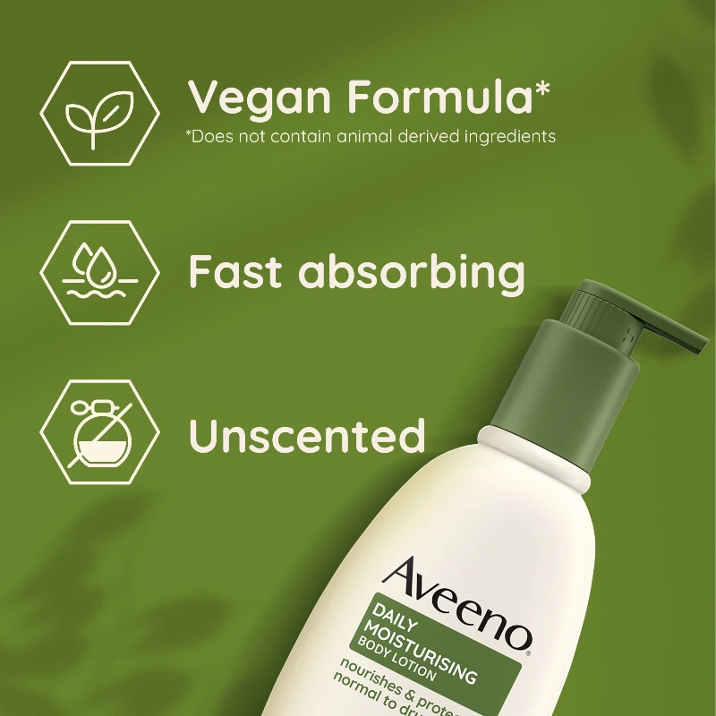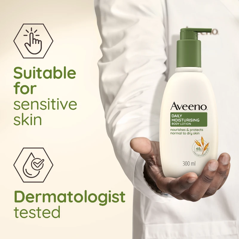 Aveeno Daily Moisturising Lotion combines nourishing oats with rich emollients to support the skin’s natural barrier, shielding it from external irritants and moisture loss. This lightweight, fast-absorbing lotion leaves skin feeling calm and comfortable while deeply nourishing to prevent dryness. Ideal for normal to dry skin and suitable for sensitive skin types, Aveeno Daily Moisturising Lotion delivers up to 48 hours of hydration* for soft, healthy-looking skin.