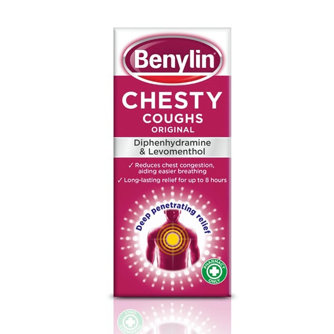 - Benylin Chesty Cough Original Syrup is a pharmacy medicine (P), available without a prescription but must be dispensed by a pharmacist.