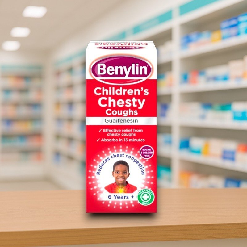Benylin Children’s 6+ Chesty Coughs Syrup contains guaifenesin to help loosen and clear mucus, making coughs more productive. Suitable for children aged 6–12 years, it provides relief from chesty coughs. Always follow the recommended dosage.
