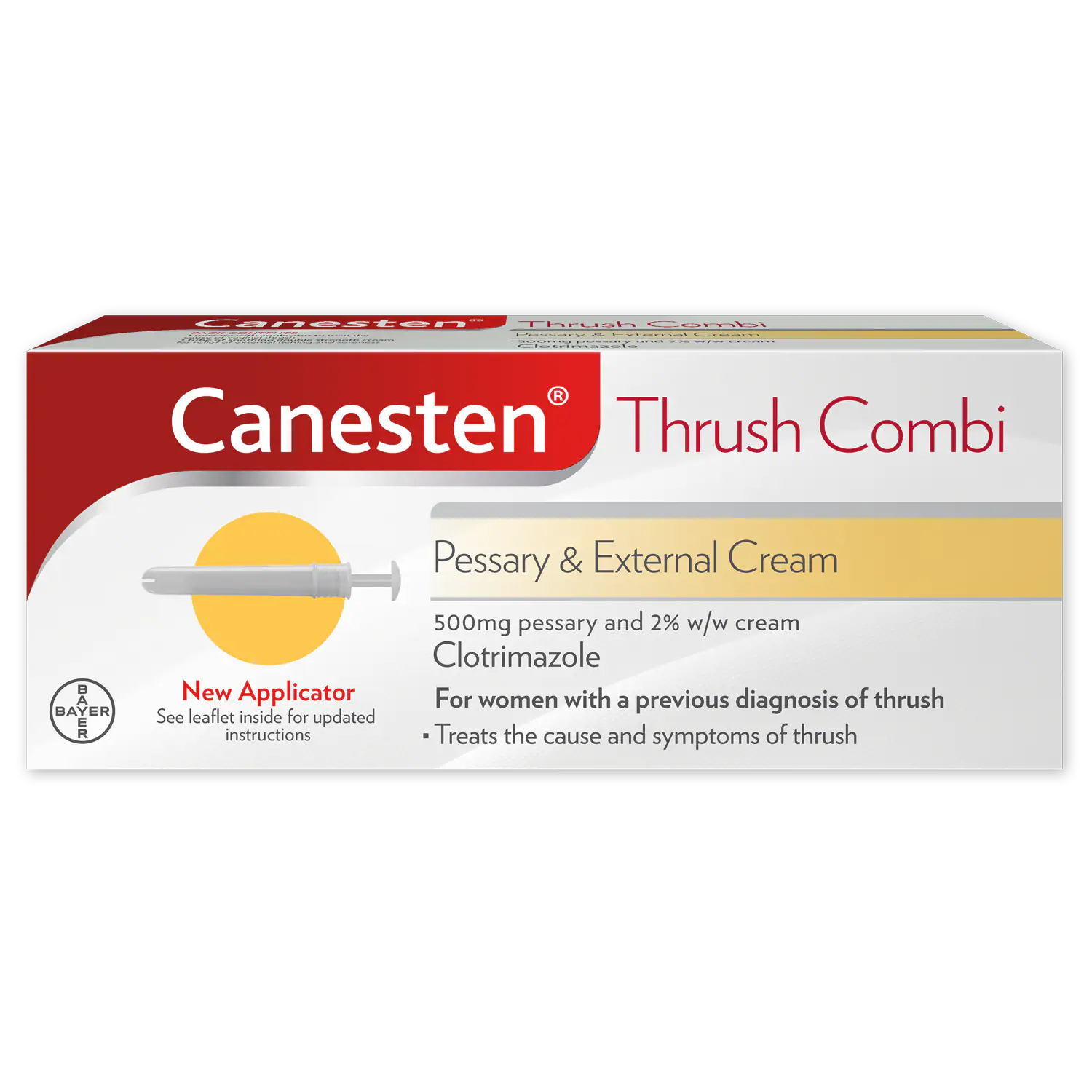 Canesten Thrush Combi 500mg Pessary & 2% External Cream provides an all-in-one solution for treating thrush, allowing you to manage both internal and external symptoms effectively. Get back to feeling comfortable and confident with Canesten.