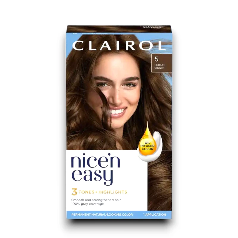 Clairol | Nice’n Easy Crème | Natural Looking Permanent Hair Dye | Medium Brown #5