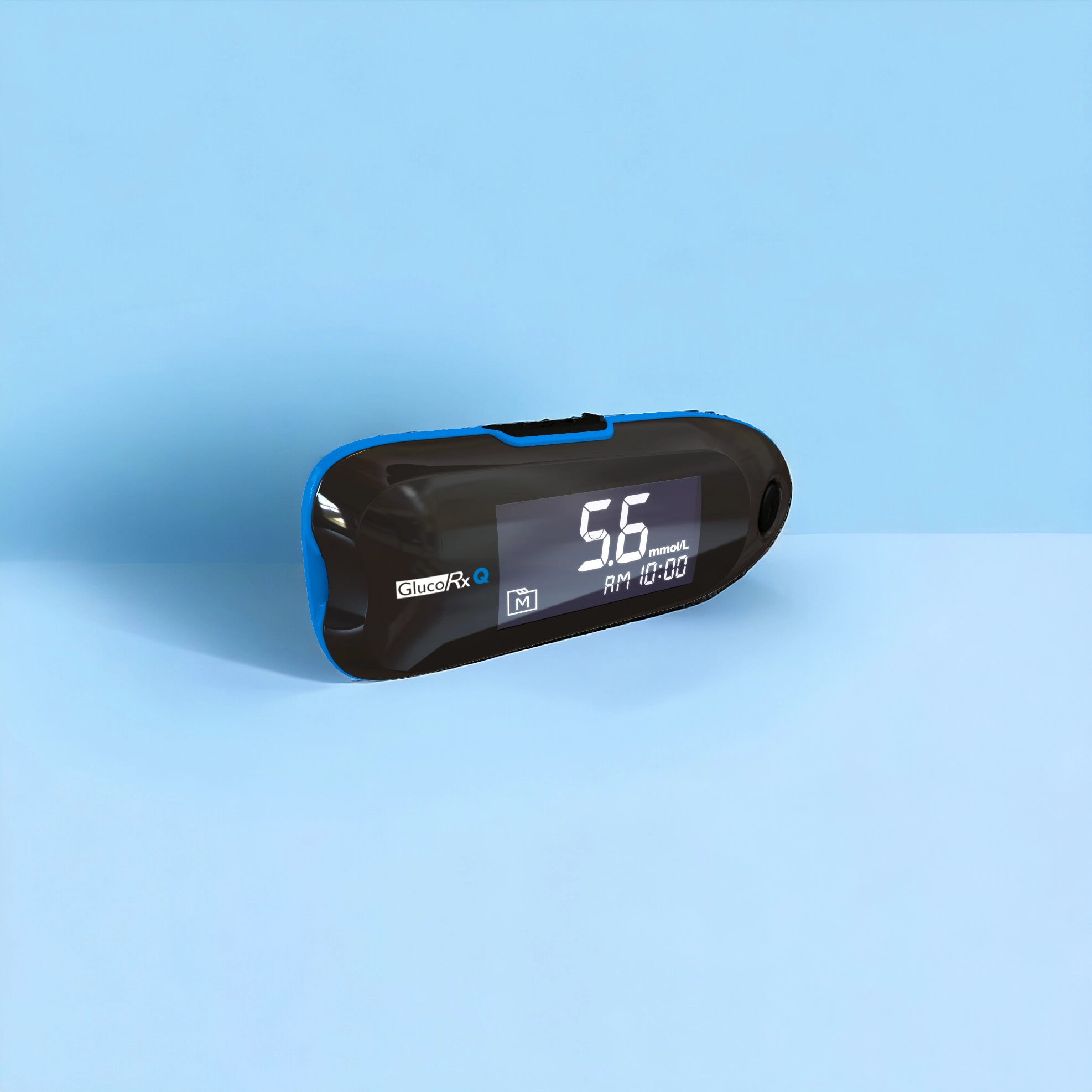 The GlucoRx Q Blood Glucose Monitoring System is a compact and user-friendly blood glucose monitoring system, ideal for those who require regular monitoring of their blood sugar levels. This system is designed to be simple to use, offering quick and accurate results. It features a backlit screen for easy reading and supports alternative site testing, providing flexibility for users.
