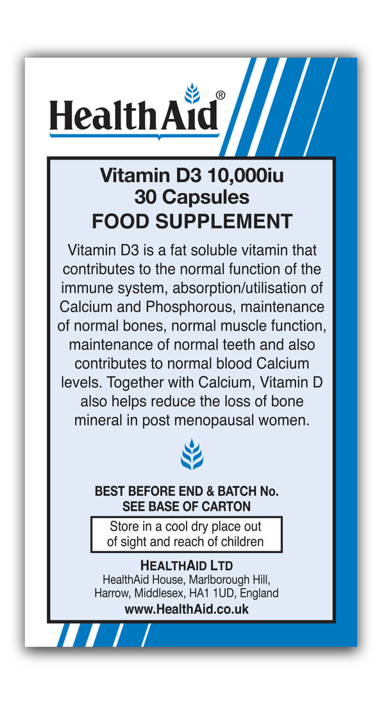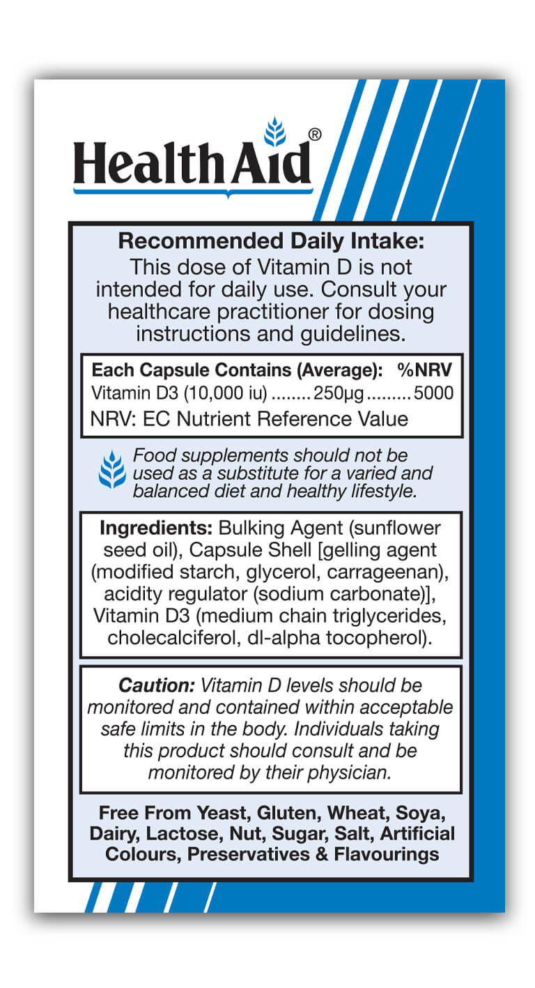 HealthAid Vitamin D3 10,000iu Vegetarian Capsules | 30