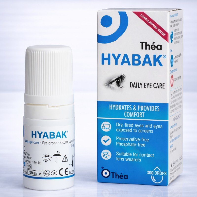 Hyabak Eye Drops are preservative-free lubricating eye drops designed to relieve dry, irritated, or uncomfortable eyes. They contain sodium hyaluronate, a naturally occurring substance that helps retain moisture and stabilise the tear film. As a result, the drops provide lasting hydration and comfort for everyday eye dryness.