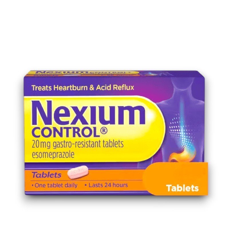 Nexium Control 20mg Tablets provide effective 24-hour relief from frequent heartburn and acid reflux by reducing stomach acid production. Suitable for adults over 18, these once-daily tablets work at the source to help prevent symptoms from returning.