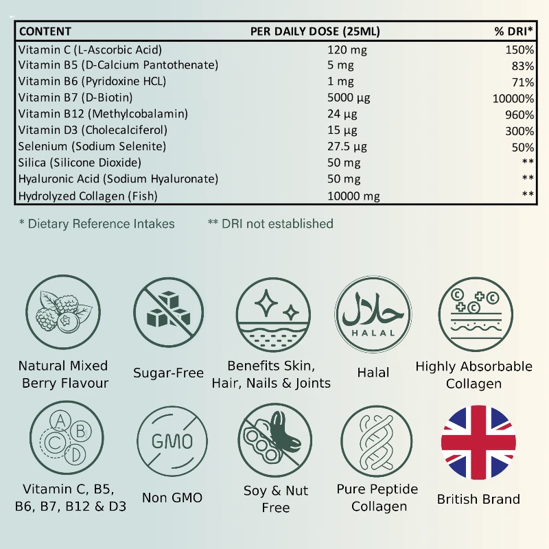 Unlock the secret to radiant skin, strong nails, luscious hair, and healthy joints with Nutri Beauties 6-in-1 Super Liquid Collagen. Integrate this potent elixir into your daily routine and witness the transformation as you nourish your body from within.
