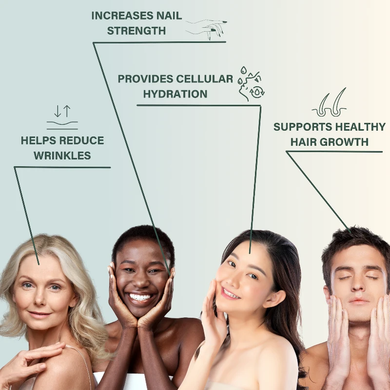 - Marine Collagen: Enhances skin elasticity, hydration, and reduces wrinkles.