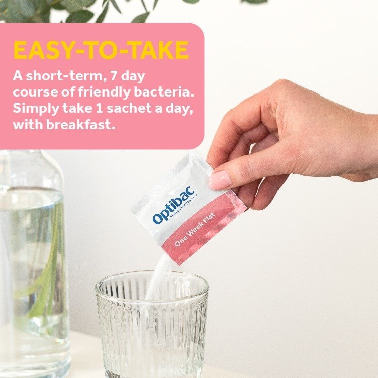 Optibac Probiotics One Week Flat Sachets is suitable for adults and children over 4 years who are looking for a short-term gut health supplement. It’s especially ideal for those with occasional bloating, including individuals with dairy or gluten sensitivities, or anyone following a vegan, vegetarian, or calorie-controlled diet. It is also safe to take during pregnancy and breastfeeding.