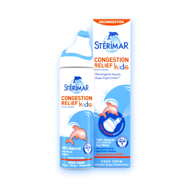 Sterimar Congestion Relief Kids Nasal Spray is a 100% natural sea water nasal spray specially designed to help relieve nasal congestion in children aged 3 months to 3 years. This gentle yet effective spray helps clear and unblock the nose, making it easier for your little one to breathe, sleep, and feed comfortably. Rich in marine minerals, it supports the natural defence of the nasal lining while being free from preservatives, steroids, and drugs – making it ideal for everyday use.