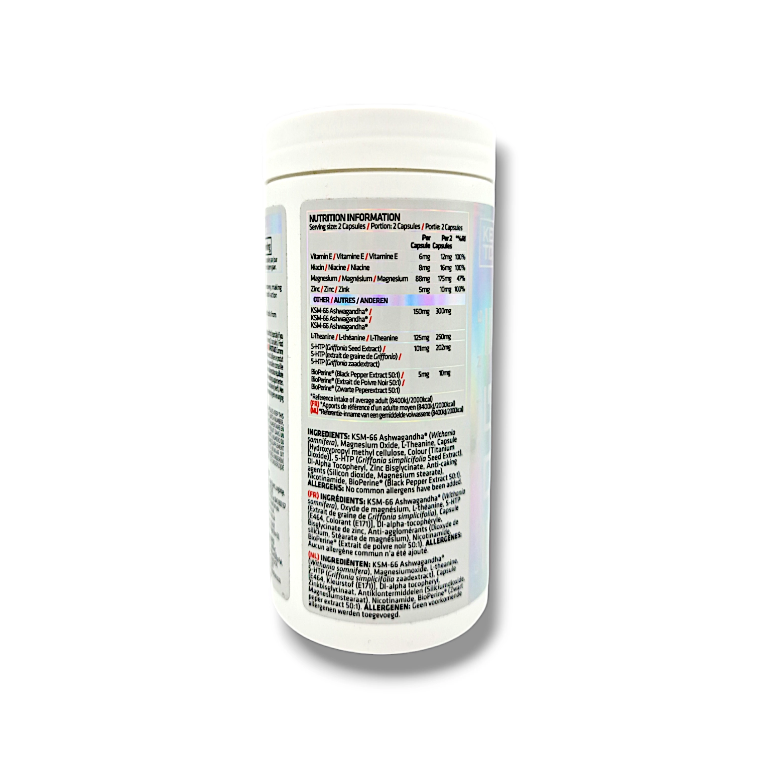 - KSM-66 Ashwagandha® (Withania somnifera): Known for its stress-relieving properties.