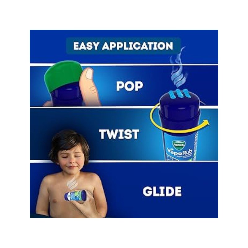 Vicks VapoRub Easy Applicator is suitable for adults and children aged 2 years and older. It is especially helpful for those suffering from coughs, nasal congestion, and minor muscular aches related to cold symptoms. This product is not suitable for children under 2 years of age.
