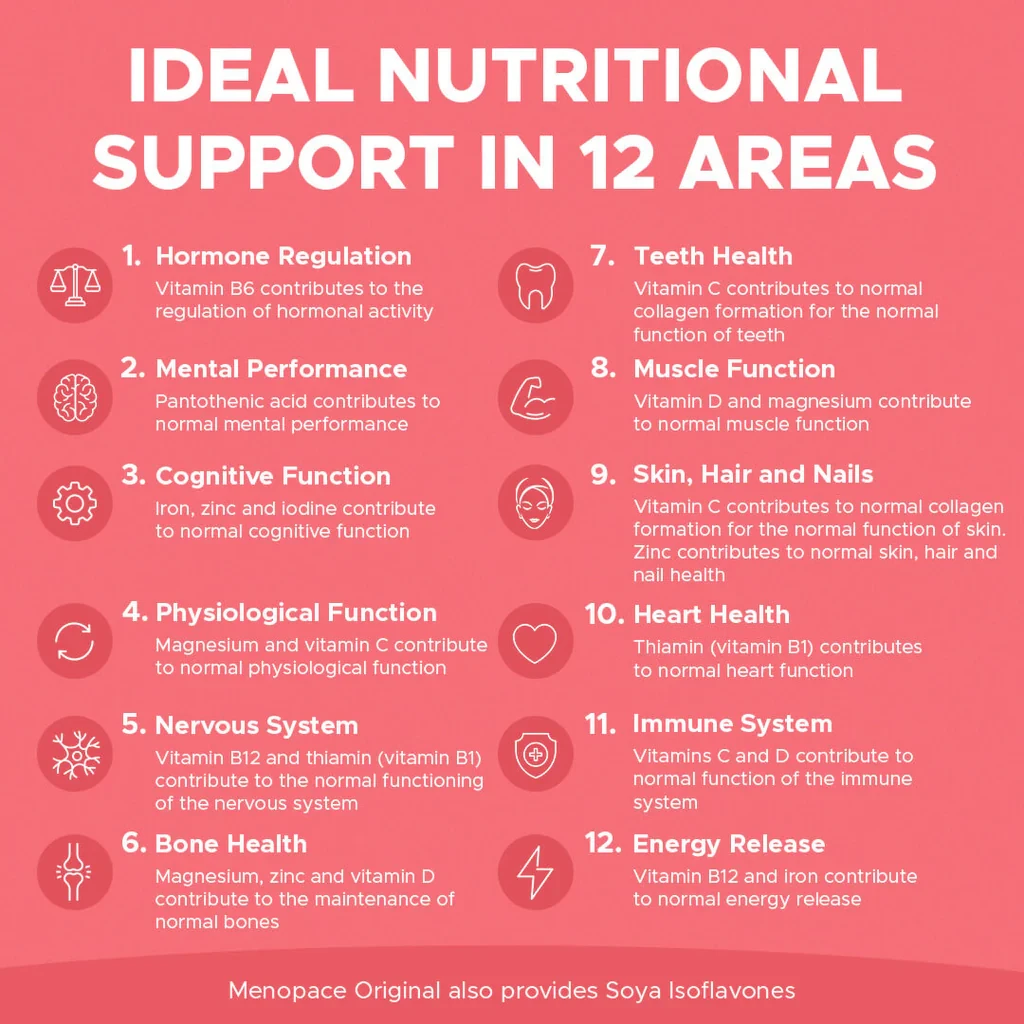 Menopace Original is a daily nutritional support supplement that helps maintain health during menopause. It does not contain hormones but is formulated to work alongside a balanced diet and lifestyle.