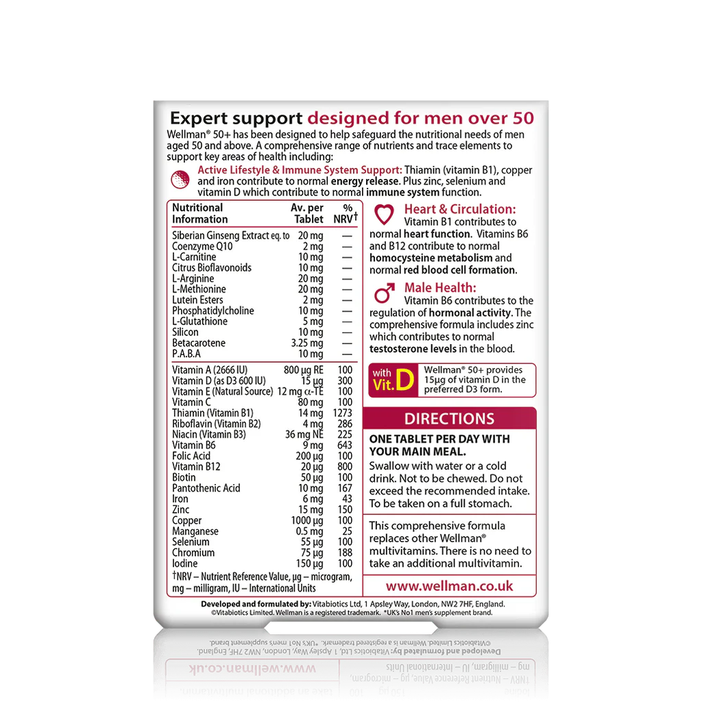 Vitabiotics Wellman 50+ Tablets are expertly formulated for men over 50, providing over 30 nutrients to support energy, immunity, heart health, testosterone levels and overall vitality. Developed by Wellman, the UK’s number one men’s supplement brand.